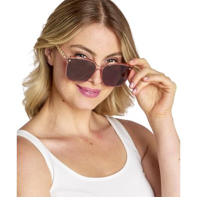 Turn heads with the bold sophistication of our 2Chic Glam Gaze Sunglasses. Featuring smoke-tinted lenses for a sleek and modern look, these sunglasses offer full 100% UV protection to keep your eyes safe on sunny days. The standout chain link arm bands add a glamorous, fashion-forward touch, while the pink and grey color options let you match your mood or outfit. Complete with a stylish protective case, these sunnies are your go-to accessory for effortless summer chic.