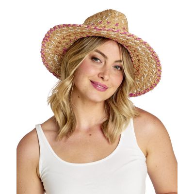 Elevate your beachside ensemble with the 2Chic X Marks the Spot Raffia Straight Brim Hat. Handcrafted from durable raffia, this sun-ready accessory features a contemporary cross-stitch design in your choice of Blue Multi, Tan Multi, or Pink Multi. The wide brim offers stylish sun protection, while its breezy, coastal vibe adds a fresh, modern flair to any warm-weather outfit.