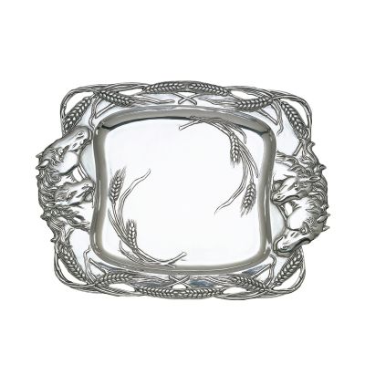 Groups of stallions mingle on either side of this handmade, aluminum dish as stalks of wheat form an openwork border around them. The incredible definition and detail within each design is both tangible and visible.