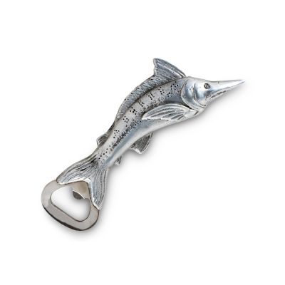 The female Marlin grows to 14 feet and 2,000 pounds, but manages to swim at 60 miles per hour. If you're tired of fishing around in drawers for tiny bottle openers, consider this efficient 7-inch Arthur Court marlin bottle opener and borrow the power of the mighty marlin to throw some weight against tough-to-open bottle caps. Whether you're sharing angling yarns over fresh fish dip or frying up the catch of the day, you can use this utensil to net hassle-free beverage opening. Wrap your hand around the long body and dorsal fin to get a solid grip, before liberating a bottle of your favorite beer or soda. This marlin bottle opener from Arthur Court has finely sculpted fins and body details you can proudly display on your bar or counter area, or stow away in totes for weekends on the boat.