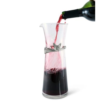 Use this sleek Hunt Horn wine carafe from Vagabond House to serve wine to your dinner guests. The 10-inch-tall glass vessel is designed in an open carafe style with a lip for easy pouring and a wide mouth for proper aeration, achieving the full flavor of your favorite fine wines. A popular beverage server for animal enthusiasts, this wine carafe has a collar crafted from pure pewter featuring the face of a fox and accented with nature-inspired branch flourishes. This woodland-themed carafe holds up to 28 ounces of liquid, or the contents of a standard bottle of wine. Enjoy serving other beverages from this elegant pitcher too. Chilled water and colorful juices poured from this Hunt Horn wine carafe make a delightful addition to your table setting or buffet spread.