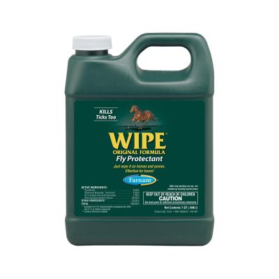 Horse owners have been relying on Wipe fly control products for more than 40 years. This dependable protectant repels and kills horse, house, stable and deer flies, gnats and mosquitoes for long-lasting protection. The convenient wipe-on formula also helps remove dirt and dandruff from your horse's coat.