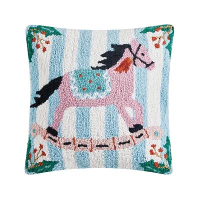 Wool Hooked Square Accent Pillow 100% wool hooked square accent pillow 100% Wool & Poly Velvet Includes polyester insert, zipper closure 16X16" throw pillow Weight: 1.79 lb (0.81 kg) Dimensions: 16 x 16 x 1.7 in (40.6 x 40.6 x 4.3 cm) A festive way to spruce up your home for the holidays or would make a wonderful Christmas gift